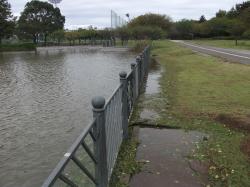 朝出勤してきてまず池の水の量にビックリ!
