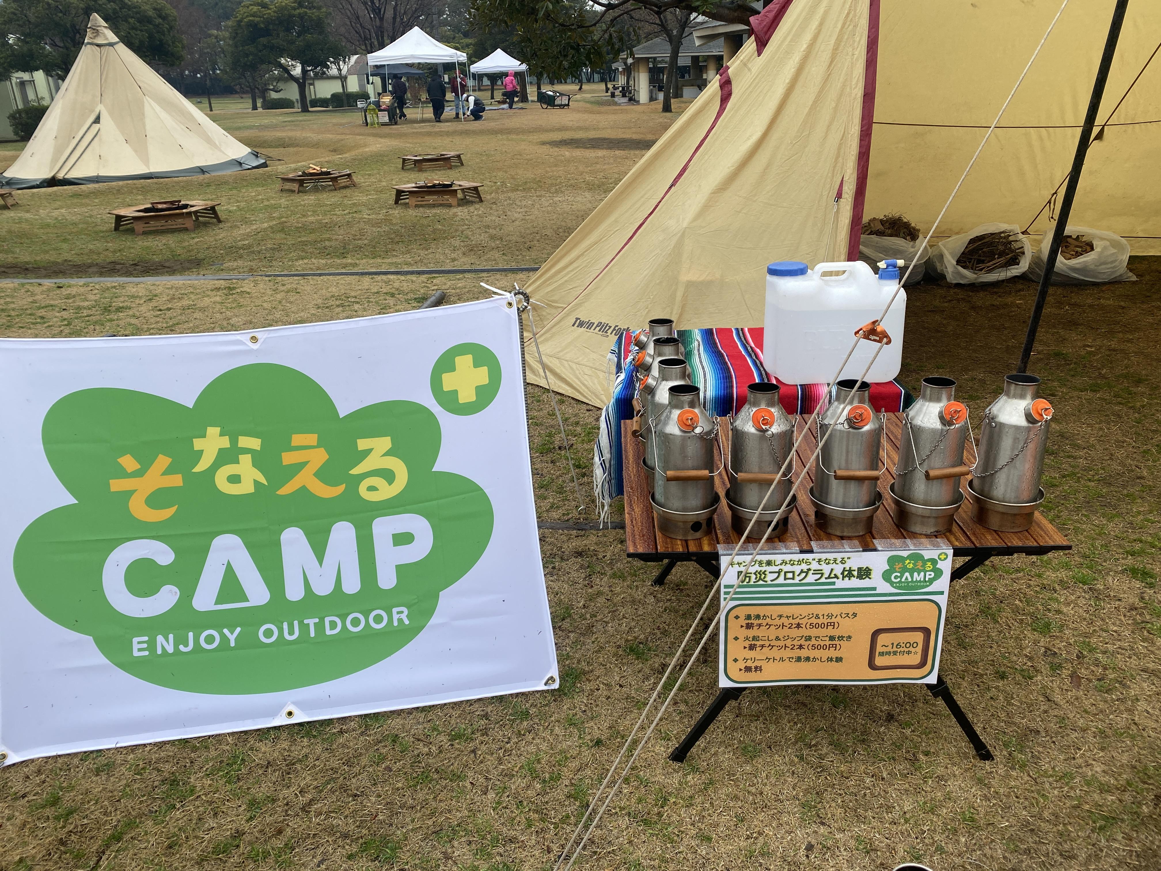 (そなえるCAMPとは:毎年3月・9月で開催している弊社の防災プログラム。「楽しみながらそなえよう!」をテーマに着火体験や、お家にあるもので挑戦できる調理体験などを開催。)