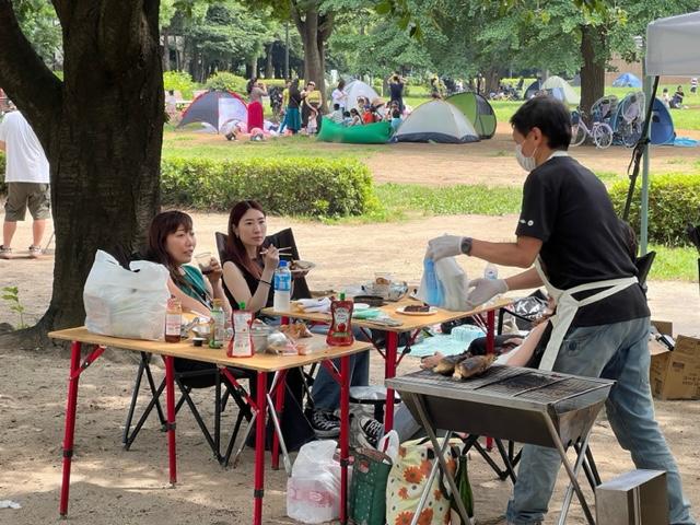 キャンプ好きのお姉さん達も偶然出会った、焚火ラウンジに大興奮!