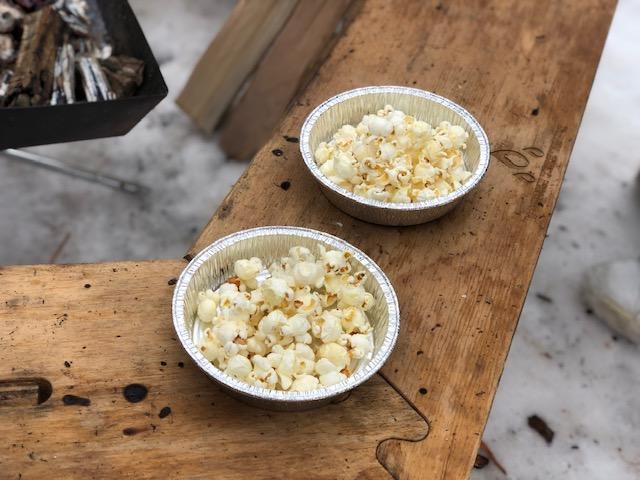 お兄さん達は焚火で作るポップコーン、スモア作りに挑戦!